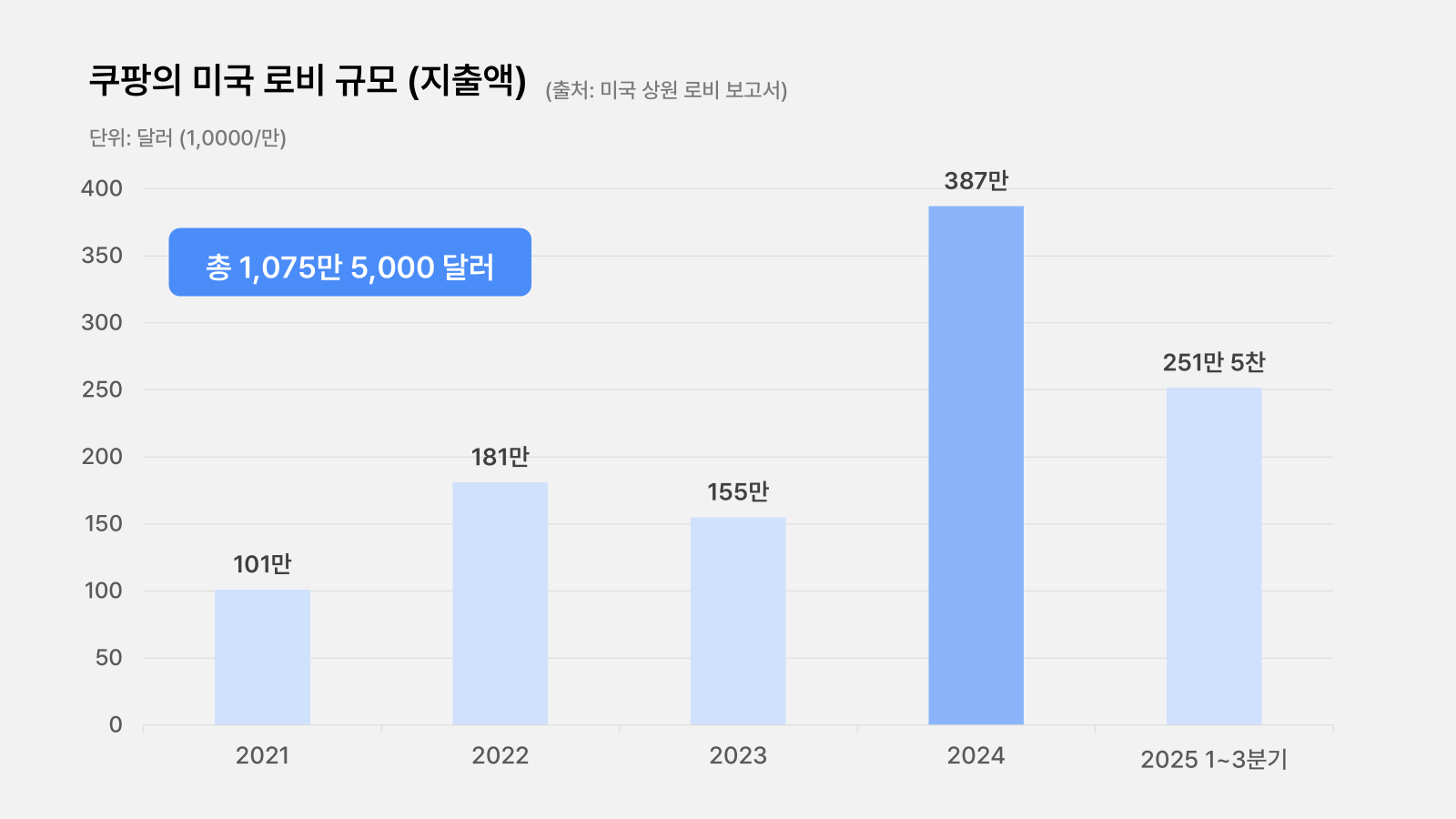 ์ฟ ํก์ด ์ง๋ 4๋ ๊ฐ ๋ฏธ๊ตญ ์ ยท๊ด๊ณ์ ๋ฌด๋ ค 159์ต ์(1,075๋ง ๋ฌ๋ฌ)์ด๋ผ๋ ์ฒ๋ฌธํ์ ์ธ ๋ก๋น ์๊ธ์ ์์๋ถ์ ์ด์ ๋ โ์ ์ฒด์ฑโ ๋ฌธ์ ์ ์ง๊ฒฐ๋ผ์. ์ฟ ํก์ ๋ฐฑ์ ๊ด๊ณผ ์๋ฌด๋ถ์ ์์ ๋ค์ โํ๊ตญ์ ์ง์ถํ ๋ฏธ๊ตญ ๊ธฐ์ ๊ธฐ์ โ์ผ๋ก ์ ์ํ๋ฉฐ ์น๋ฐํ๊ฒ ๋ก๋น๋ฅผ ํผ์ณ์์ด์. ๋ ผ๋ฆฌ๋ ๊ฐ๋จํด์. โ์ฟ ํก์ ๊ท์ ํ๋ ๊ฑด ๋ฏธ๊ตญ ๊ธฐ์ ์ ํ์ํ๋ ๊ฒโ์ด๋ผ๋ ํ๋ ์์ ์ง์, ํ๊ตญ ์ ๋ถ๋ ๊ตญํ์ ๊ฐ์ญ์ โํยท๋ฏธ ํต์ ๋ง์ฐฐโ ์ด์๋ก ํค์ฐ๋ ค๋ ์ ๋ต์ด์ฃ . ํ๊ตญ ๋ด์์ ์๊ธฐ๊ฐ ์ปค์ง ๋๋ง๋ค ๋ฏธ๊ตญ ๋ก๋น ์๊ธ์ด ๊ธฐํ์ ์ผ๋ก ๊ธ์ฆํ๋ค๋ ์ฌ์ค์, ์ด๋ค์ด ํ๊ตญ์ ๋ฒ๋ณด๋ค ๋ฏธ๊ตญ์ ์ ๊น์ ๋ ๊ฐ๋ ฅํ ์์กด ์๋จ์ผ๋ก ์ผ์์์ ๋ฐฉ์ฆํด์.