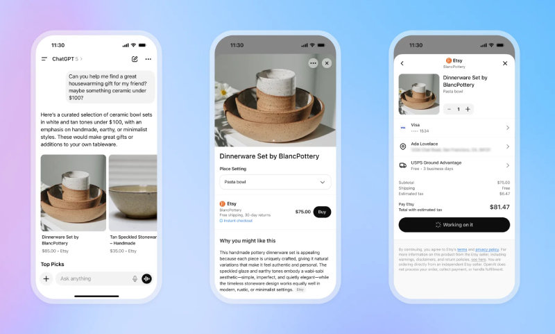 이번 기능은 매주 7억 명 이상이 챗GPT를 검색과 일상 업무에 활용한다는 내부 데이터를 기반으로 기획됐어요. 오픈AI는 “소비자들이 이미 챗GPT에서 상품을 찾고 있다면, 바로 구매까지 연결되는 것이 자연스럽다”고 설명했어요. 이번 발표는 미국 지역 사용자에게 우선 적용되며, 초기 파트너는 수공예품·빈티지 전문 플랫폼 Etsy예요. 사용자는 저장된 카드를 이용하거나 새로운 결제 수단을 등록해 즉시 결제가 가능하다고 해요.