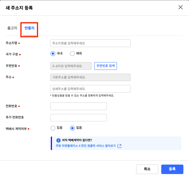 5. 출고지와 반품지 설정