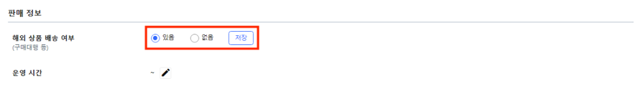 해외 상품 배송 여부를 “있음”으로 선택한 후 “저장”을 클릭해 주세요.